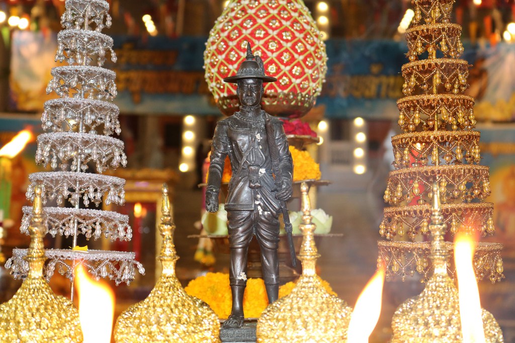 เนื่องจากแผ่นดินบริเวณแถบนี้มีความเกี่ยวข้องอยู่ในรัชสมัยของสมเด็จพระเจ้าตากสินมหาราช ได้สู้รบกับแม่ทัพพม่าในสมรภูมิรบบางแก้ว เมื่อประมาณปี พ.ศ. 2317 หลังจากมีพิธีบวงสรวงสิ่งศักดิ์สิทธิ์เสร็จแล้วได้มีการเปิดงานอย่างยิ่งใหญ่อลังการไปกับการแสดงละครอิงประวัติศาสตร์ของเหล่านักแสดงในชุดเรื่อง “ตำนาน เมืองราชาบุรียุทธวิธีศึกบางแก้ว”
