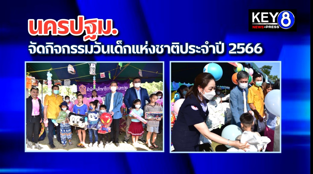 จังหวัดนครปฐม จัดกิจกรรมเนื่องในวันเด็กแห่งชาติประจำปี 2566 พร้อมแจกของขวัญ อาหาร และเครื่องดื่ม แก่เด็กๆ โดยมีผู้ปกครองพาบุตรหลานมาร่วมงานเป็นจำนวนมาก