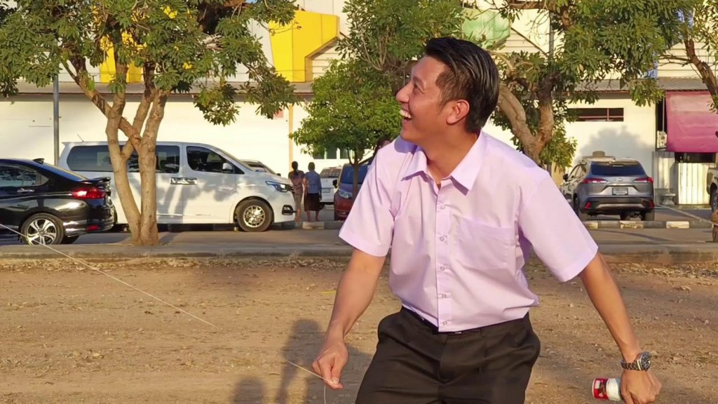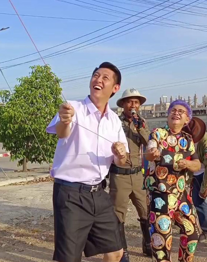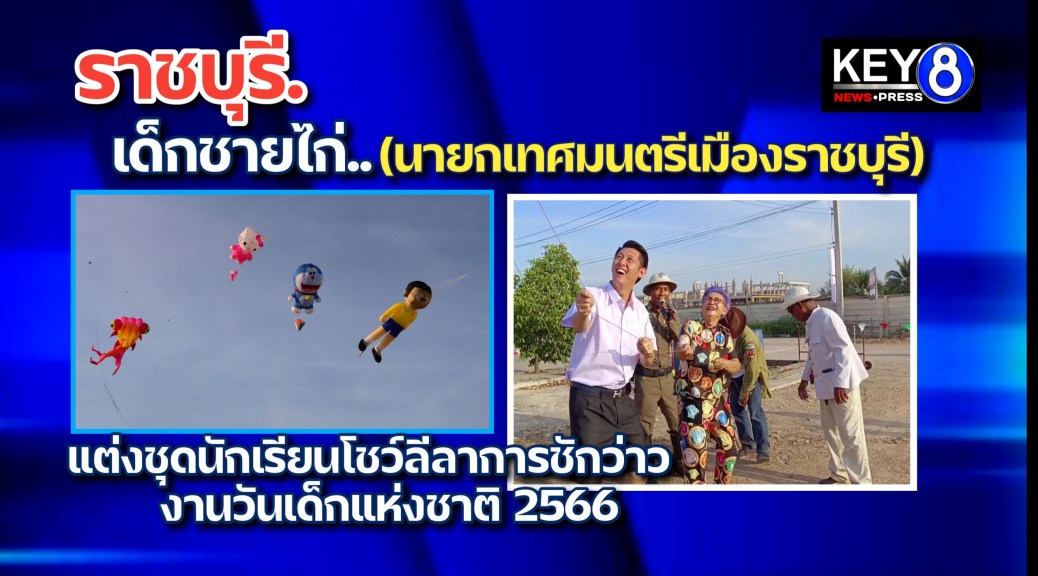 ราชบุรี.เด็กชายไก่ ” นายกเทศมนตรีเมืองราชบุรี แต่งชุดนักเรียนโชว์ลีลาการชักว่าวทะยานขึ้นท้องฟ้าจนติดลมบน งานนี้เจ้าตัวบอกนึกถึงวัยเด็กออกมาเล่นว่าวกับเพื่อน ๆ วันหนึ่ง 2 – 3 ชม.