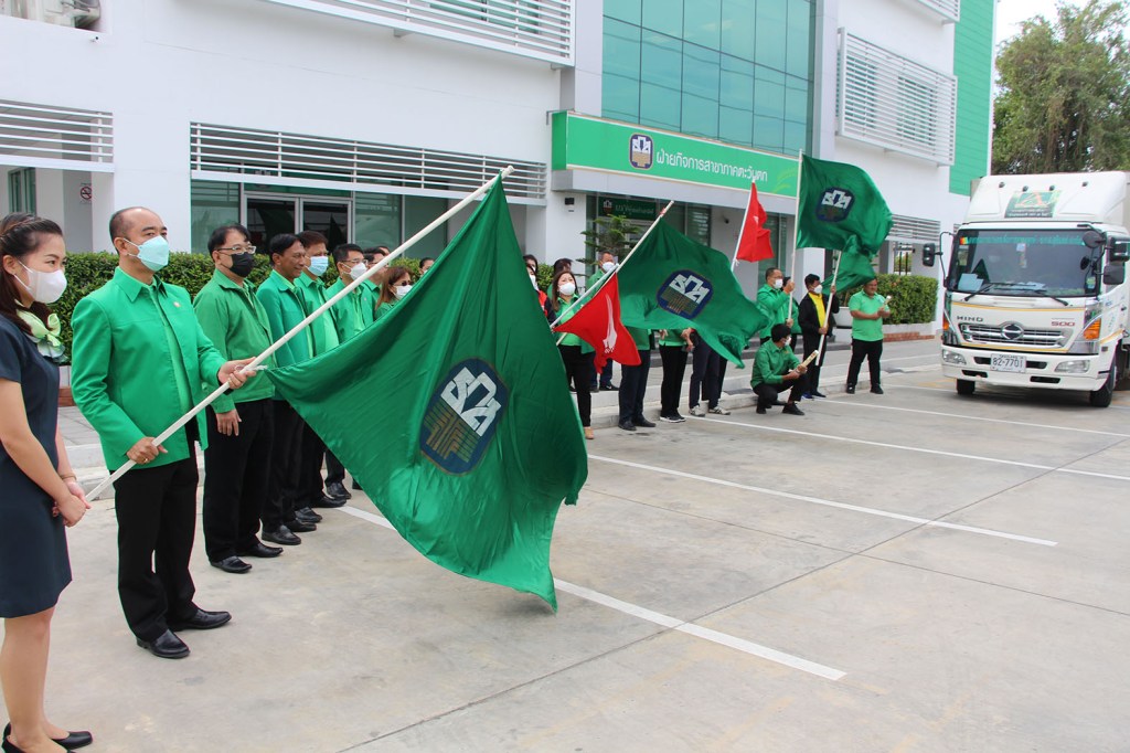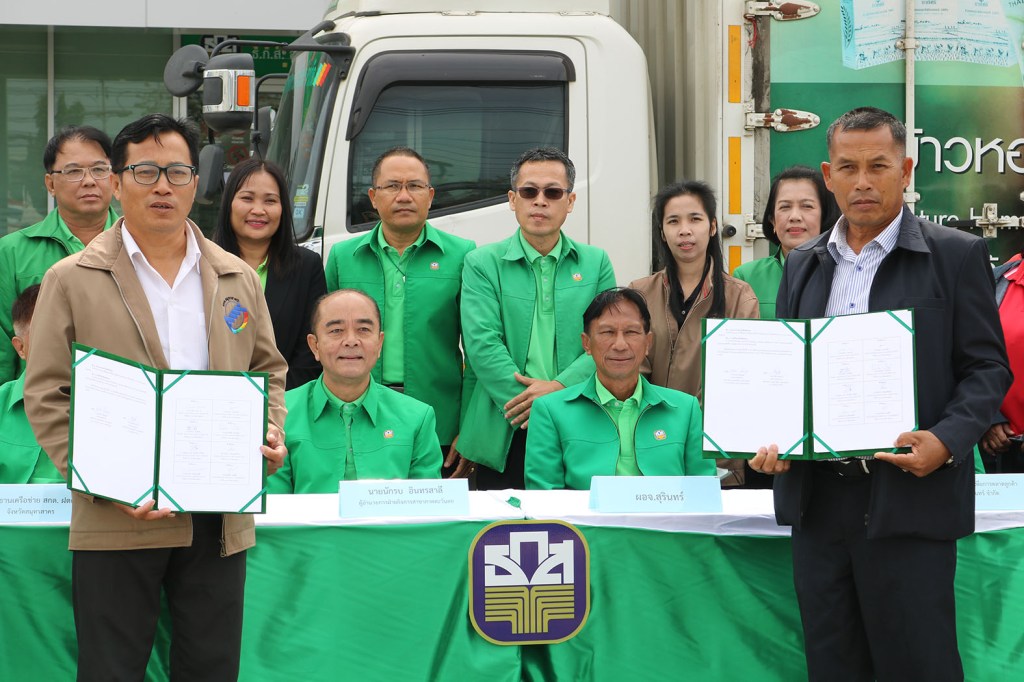โดย นายบัวสิน คมกล้า ประธานกรรมการ และเครือข่ายสหกรณ์การเกษตรเพื่อการตลาดลูกค้า ธ.ก.ส. (สกต.) ฝ่ายกิจการสาขาภาคตะวันตก โดย นายมานัส เพิ่มพูน ประธานกรรมการเครือข่าย บริเวณหน้าสำนักงาน ธ.ก.ส.ฝ่ายกิจการสาขาภาคตะวันตก อ.เมือง จ.ราชบุรี