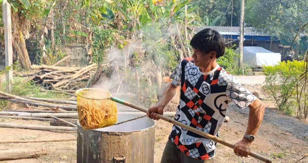 ซึ่งขั้นตอนการทำมีหลายขั้นตอน ยกร่อง ใส่ปุ๋ย พลวนดิน รดน้ำ ซึ่งปีนี้ปุ๋ยมีราคาแพงมาก กระสอบละประมาณ 1600 -1700 บาท รากถั่วพูจะได้กินปีละครั้ง ถ้าหน้าร้อนจะไม่มีหัว หากอากาศหนาวหัวก็จะดี จะเริ่มหว่านเม็ดถั่วพูประมาณเดือนสิงหา – กันยายน จากนั้นก็รดน้ำใส่ปุ๋ย จนกว่าต้นจะโตเต็มที่ช่วงปลายเดือนมกราคมถึงต้นดือนกุมภาพันธ์ ก็จะเริ่มขุดหัวขึ้นมา แล้วคัดเอาแต่หัวที่ใช้ได้ นำมาตัดหัวท้าย และนำไปขัดผิวล้างดินโคลนออก ในส่วนของการต้มนั้นใช้ถังสแตนเลสขนาดใหญ่ ต้มนานกว่า 4 ชั่วโมง พอใกล้จะใช้ได้ก็นำเกลือและน้ำตาลปรุงรสเทลงไปในถัง เพื่อให้ได้รสชาติหวามเค็ม จึงตักขึ้นมาทำการคัดหัวใหญ่เล็กนำส่งให้ลูกค้า