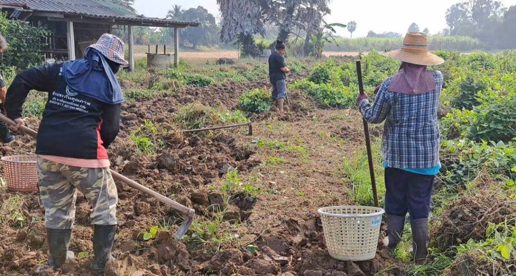 เมื่อวันที่ 4 ก.พ. 66 เกษตรกรหมู่ที่ 3 ต.คลองข่อย อ.โพธาราม จ.ราชบุรี ได้เวลาขุดรากถั่วพูขึ้นมาจากดิน ซึ่งเป็นหัวเคลือยหัวมัน 1 ปีมีกินแค่ครั้งเดียว โดเกษตรกรจะเริ่มปลูกถั่วพูเพื่อเอาหัวจากรากที่อยู่บริเวณโคนราก ในเดือนสิงหาคมของทุกปี ถึงช่วงปลายเดือนธันวาคมหรือต้นเดือนมกราคม จึงจะเริ่มขุดดูรากว่ามีหัวขนาดโตพอที่จะนำไปต้มได้หรือยัง เมื่อได้ขนาดแล้วจะค่อย ๆ ทยอยขุดและนำขึ้นมาต้ม และจำหน่ายผู้ที่นิยมชื่นชอบบริโภค โดใช้จอบขุดขึ้นมาตัดแต่งล้างทำความสะอาด และนำไปต้มในน้ำเดือดประมาณ 4 ชั่วโมง ก็จะได้รากถั่วพูต้มที่รสชาติ หวาน มัน เค็ม โดยรากถั่วพูจะมีสรรพคุณทางยามากมาย อาทิ ช่วยแก้ไอ ขับเสมหะ แน่นหน้าอก อ่อนเพลีย ร้อนใน กระหายน้ำ และไข้กาฬ