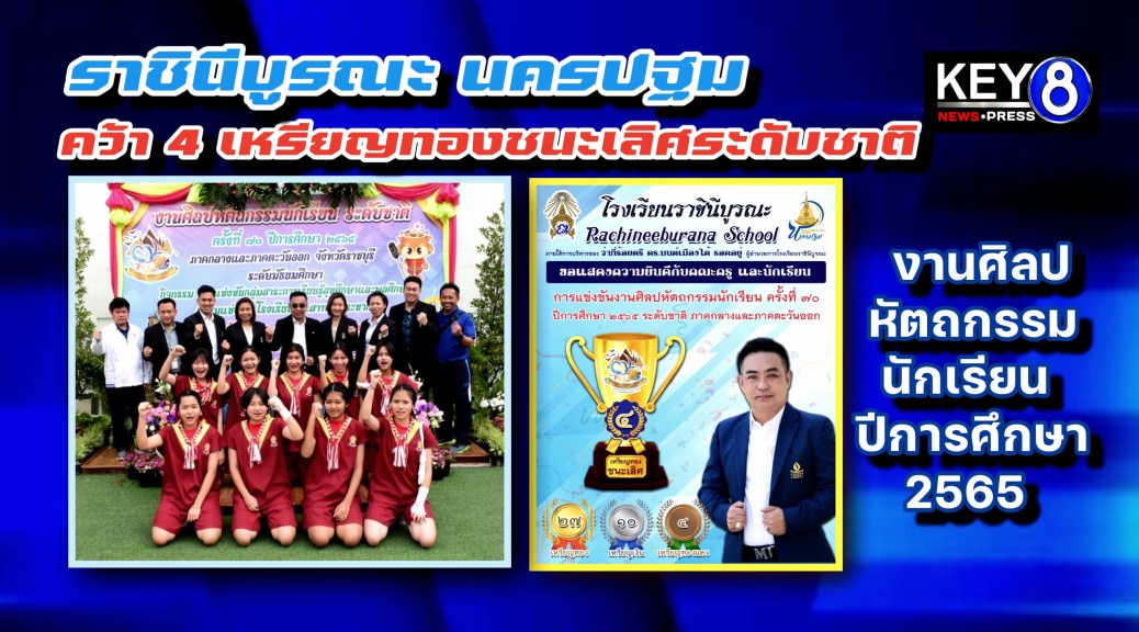 โรงเรียนราชินีบูรณะ จ.นครปฐม คว้า 4 เหรียญทองชนะเลิศระดับชาติ งานศิลปหัตถกรรมนักเรียน ปีการศึกษา2565 สูงสุดเป็นอันดับ 1โรงเรียนมัธยมศึกษาจังหวัดนครปฐม