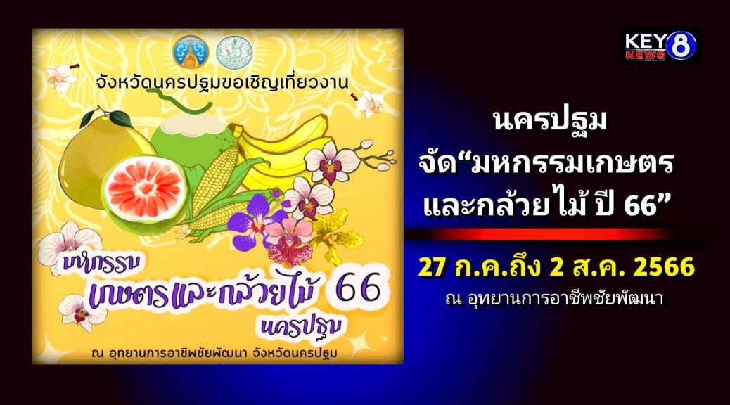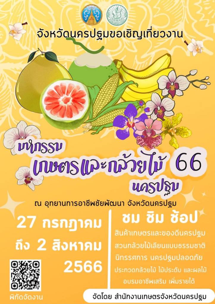 นครปฐมเชิญชมงาน “มหกรรมเกษตร และกล้วยไม้ นครปฐม 66” 27 กรกฎาคม – 2 สิงหาคม 2566 ณ อุทยานการอาชีพชัยพัฒนา จังหวัดนครปฐม