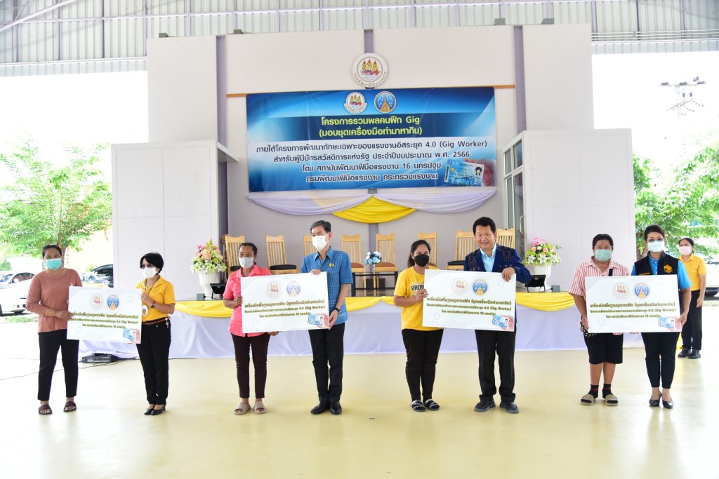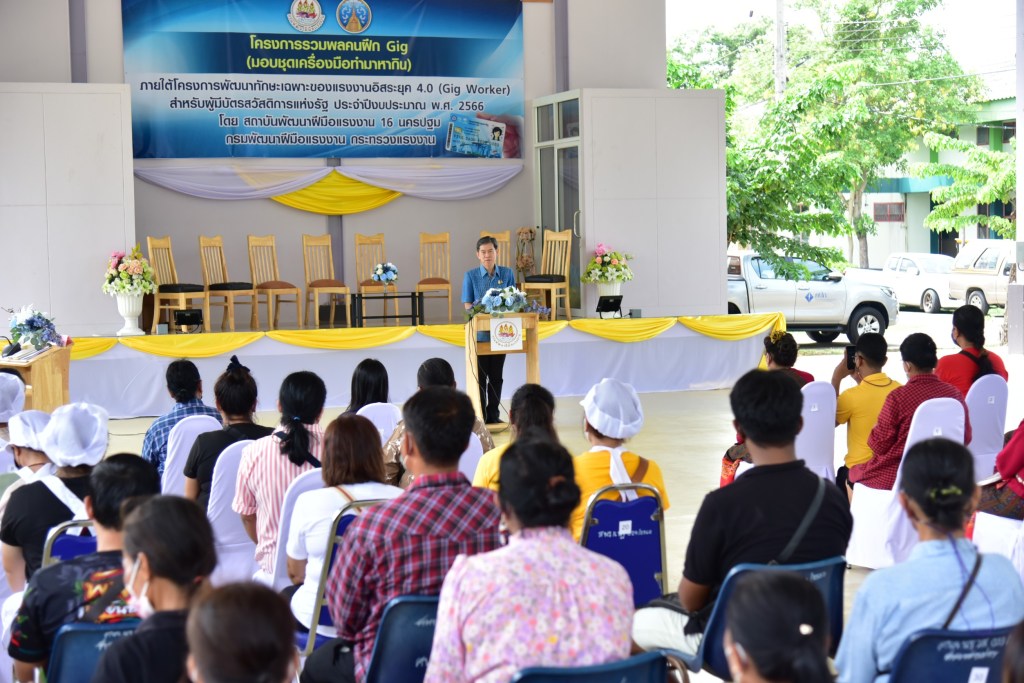 สถาบันพัฒนาฝีมือแรงงาน 16 นครปฐม จัดโครงการรวมพลคนฝึก Gig (มอบชุดเครื่องมือทำมาหากิน) ภายใต้โครงการพัฒนาทักษะเฉพาะของแรงงานอิสระยุค 4.0 ประจำปีงบประมาณ 2566