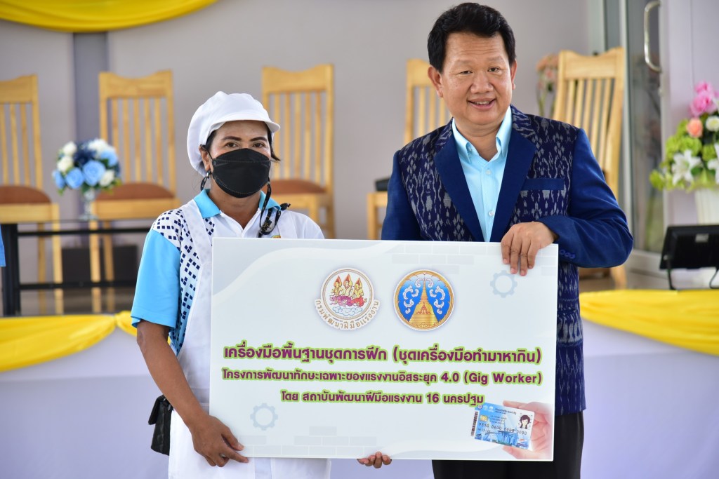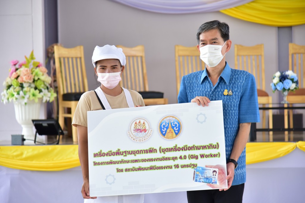 นางสาวศิริธร เลาหะวิไลย ผู้อำนวยการสถาบันพัฒนาฝีมือแรงงาน 16 นครปฐม กล่าวว่า ยุทธศาสตร์สำคัญภายใต้การนำของนายกรัฐมนตรี เน้นในเรื่องการพัฒนาสู่ “ความมั่นคง มั่งคั่ง ยั่งยืน” ด้วยการสร้างความเข้มแข็งจากภายใน เพื่อขับเคลื่อนการปฏิรูปประเทศไทย ให้สามารถรับมือกับโอกาสและภัยคุกคาม ซึ่งประเทศไทยกำลังประสบปัญหาการขาดแคลนแรงงานทั้งเชิงปริมาณ และเชิงคุณภาพ เพื่อก้าวข้ามการพัฒนาเศรษฐกิจไทยสู่ประเทศที่มีรายได้สูง และยกระดับคุณภาพชีวิตของประชากรให้มีความเป็นอยู่ที่ดีขึ้น กระทรวงแรงงาน โดยกรมพัฒนาฝีมือแรงงานในฐานะหน่วยงานภาครัฐ จึงได้จัดทำ “โครงการพัฒนาทักษะเฉพาะของแรงงาน 4.0 (Gig Worker) เพื่อมอบเครื่องมือทำมาหากินที่สอดคล้องกับสาขาที่ฝึกให้แก่ผู้ผ่านการฝึกอบรม ซึ่งจะทำให้ผู้ผ่านการฝึกอบรมนำไปใช้ในการประกอบอาชีพ ต่อไป