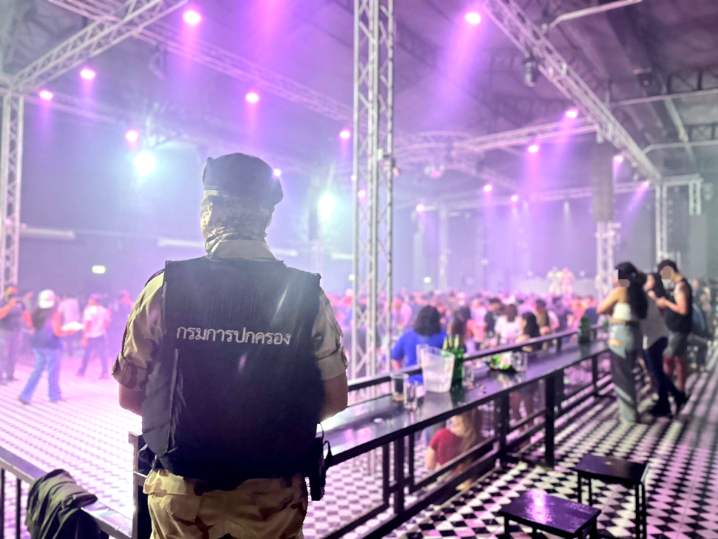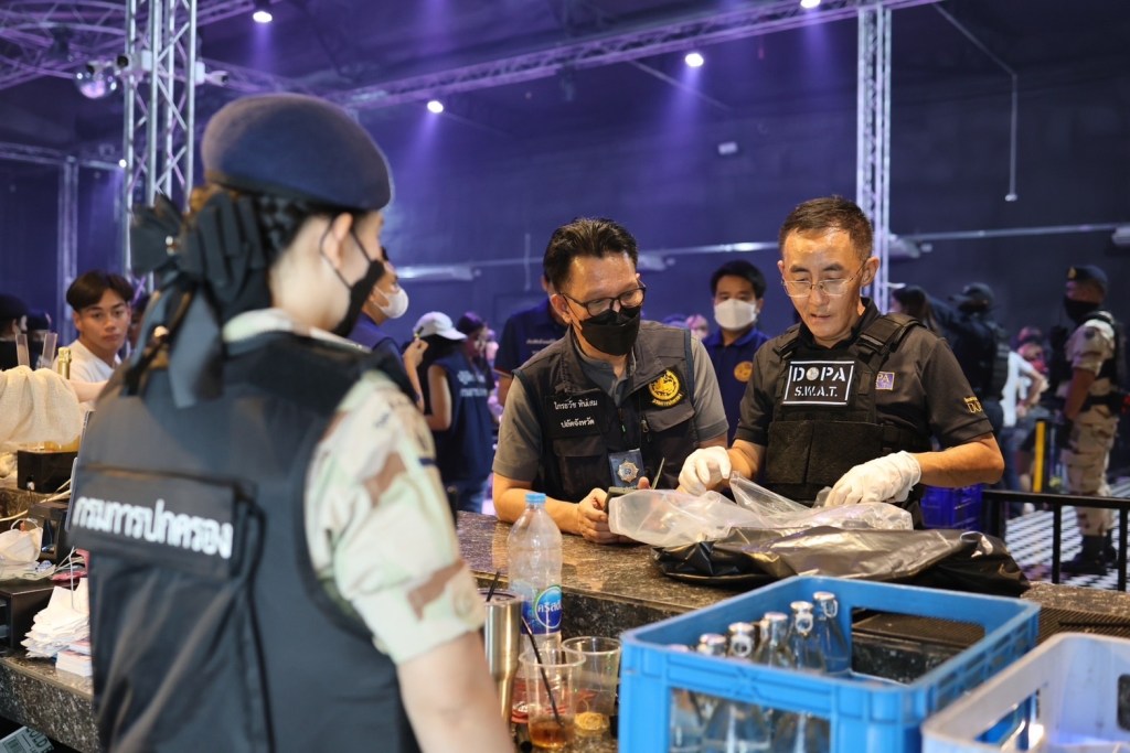 เจ้าหน้าที่ฝ่ายปกครองได้ประกาศให้ทุกคนอยู่ในความสงบ และแยกอายุนักเที่ยว ซึ่งนักเที่ยวได้ทิ้งยาเสพติดลงเกลื่อนพื้นร้าน ส่วนใหญ่เป็นยาเคตามีนจำนวนหลายซอง