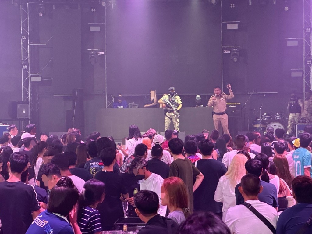 และวันที่ 22 กรกฎาคม 2566 เวลา 01.30 เจ้าหน้าที่ฝ่ายปกครองได้สนธิกำลังเข้าทำการจับกุม เมื่อเจ้าหน้าที่ไปถึงร้าน ได้กระจายกำลังจู่โจมเข้าปิดล้อมสถานบริการทั้งสองแห่ง ซึ่งนักเที่ยวซึ่งกำลังเต้นอย่างสนุกสนานและมีนักเที่ยวที่กำลังเสพยาอยู่ภายในร้าน ต่างตกใจวิ่งหนี แต่เจ้าหน้าที่ได้ปิดล้อมทางออกไว้ทั้งหมด ทำให้ไม่สามารถหลบหนีได้